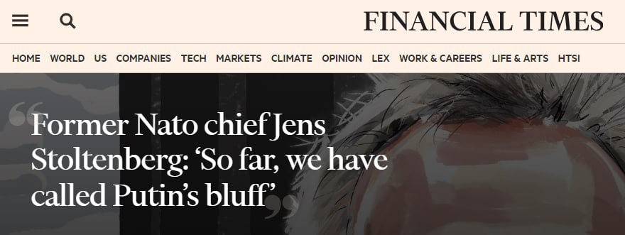 Такое мнение высказал экс-генсек НАТО Йенс Столтенберг в интервью Financial Times.