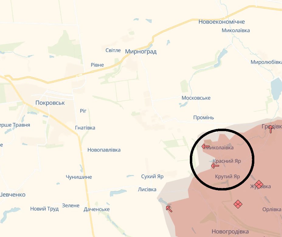 По информации украинского военного паблика, речь идет трех населенных пунктах на Покровском направлении – Красном Яре, Николаевке (севернее Красного Яра), Крутом Яре (южнее Красного Яра), а также о Мясожаровке (Купянское направление).