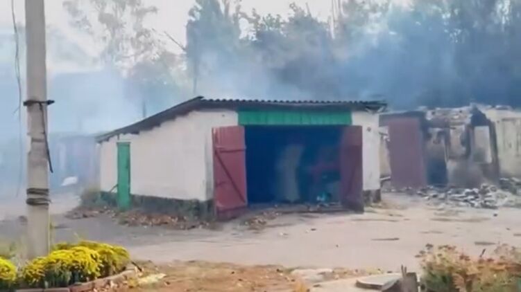 На кадрах видны ряды гаражей, большинство из которых полностью разрушено обстрелом. Кроме этого два трёхэтажных многоквартирных жилых здания – у первого дома полностью обвалился угол; около фундамента второго наблюдается горение. В воздухе ещё висит дым после разрыва боеприпаса.