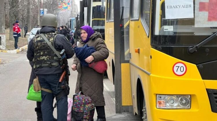 Эвакуация населения через гуманитарный коридор. Фото: ГСЧС