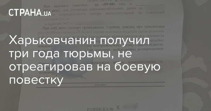 Харьковчанин получил три года тюрьмы, не отреагировав на боевую повестку