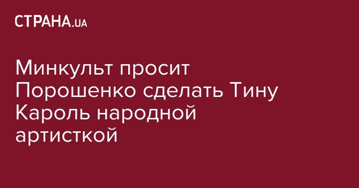 Министр культуры Евгений Нищук подал Петру Порошенко ходатайство о присвоении звания народной артистки Тине Кароль. Об этом сообщает Укринформ.