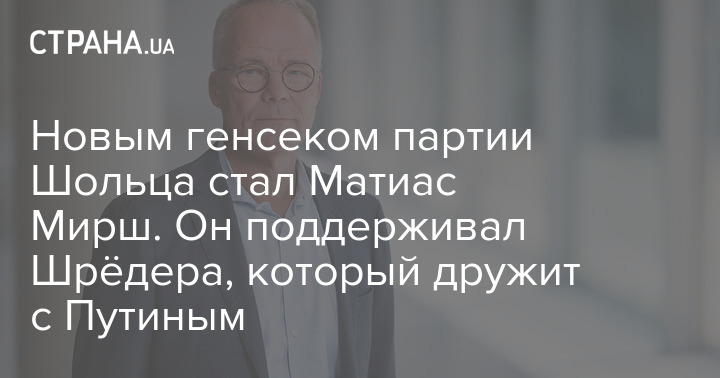Новым генсеком партии Шольца стал Матиас Мирш. Он поддерживал Шрёдера, который дружит с Путиным