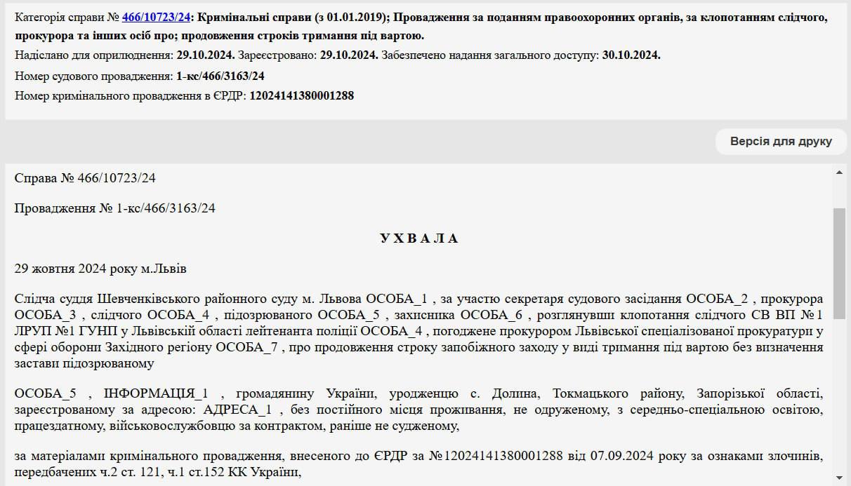 Согласно материалам дела, обнародованным в судебном реестре, событие произошло ночью 6 сентября 2024 года в одном из двухзвёздочных отелей Львова.