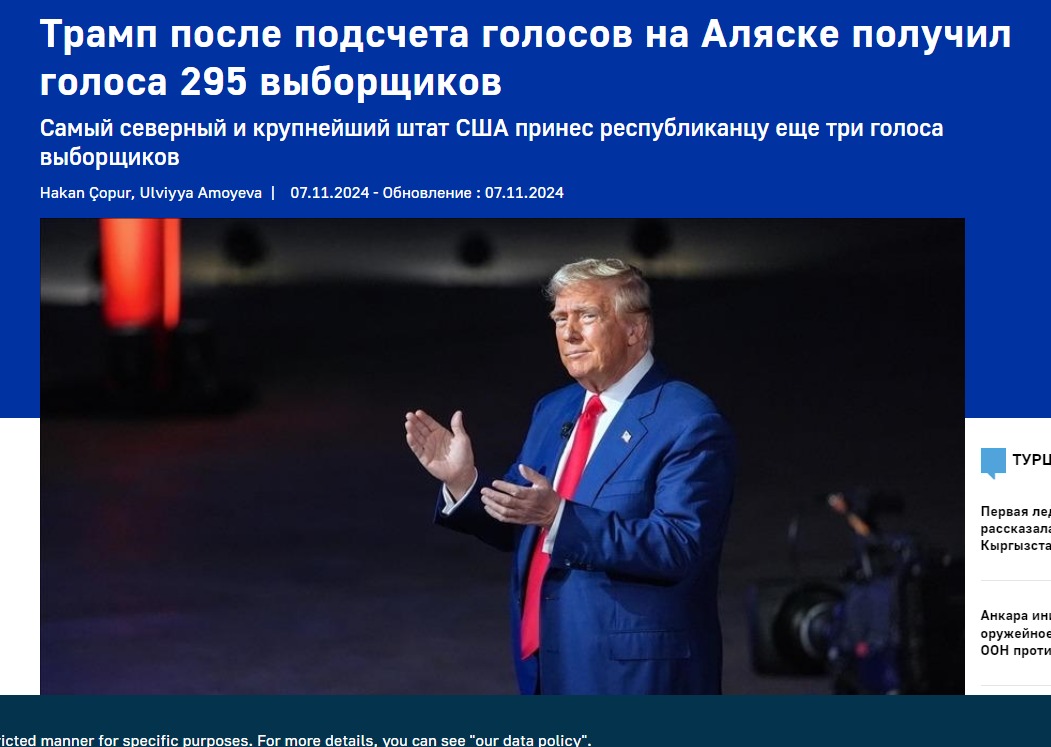 Дональд Трамп набрал 295 голосов выборщиков из 270 необходимых, в то время как Камала Харрис всего 226 с учетом голосов двух выборщиков в штате Мэн.