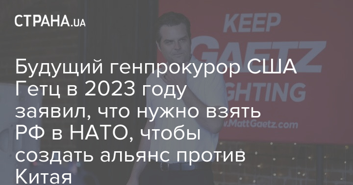 Будущий генпрокурор США Мэтт Гетц летом 2023 года заявил, что лучше взять в НАТО не Украину, а Россию, чтобы создать альянс против Китая.