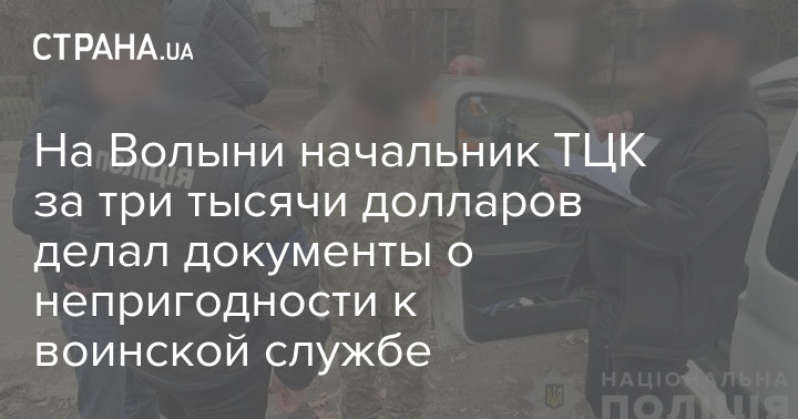 На Волыни начальник ТЦК за три тысячи долларов делал документы о непригодности к воинской службе