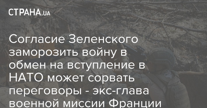 Согласие Зеленского заморозить войну в обмен на вступление в НАТО может сорвать переговоры - экс-глава военной миссии Франции