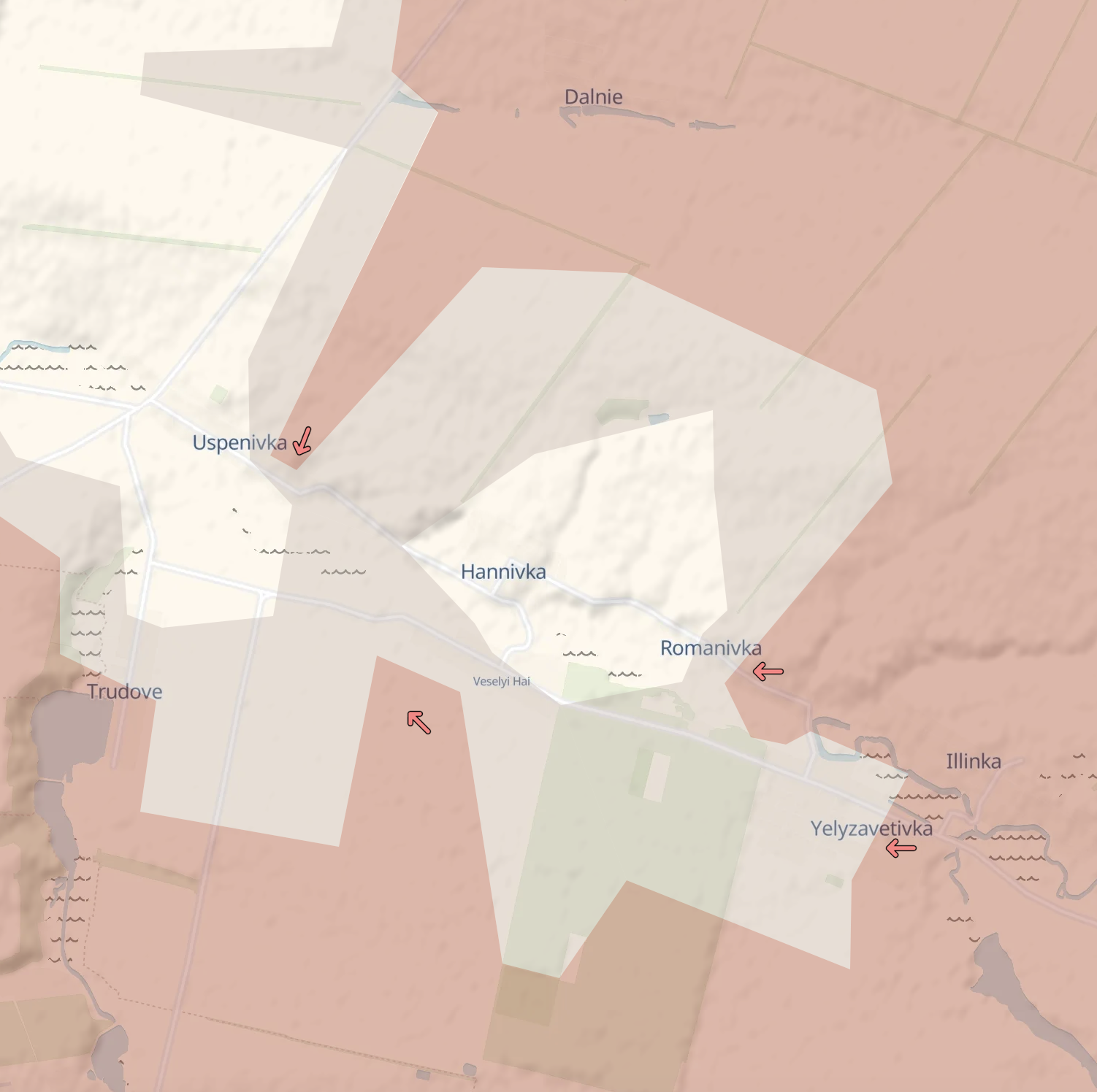 По его сведениям, россияне также пытаются выйти на рубеж между Успеновкой и Анновкой, там идут бои. "Трудно понять смысл удержания "Успеновского мешка", когда враг продолжает постепенно захватывать Курахово", - резюмирует паблик.