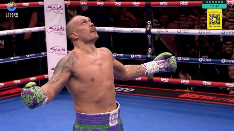 После победы Усик поднял над головой саблю украинского гетмана Ивана Мазепы 17 века.
