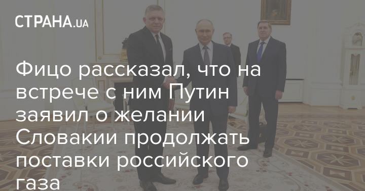 Фицо рассказал, что на встрече с ним Путин заявил о желании Словакии продолжать поставки российского газа