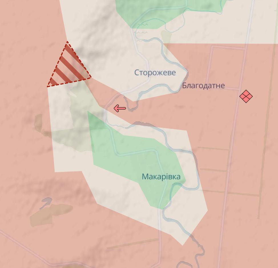 Российские паблики заявляют, что армия РФ захватила и расположенное севернее Макаровки Сторожевое (на карте DeepState указано как серая зона).