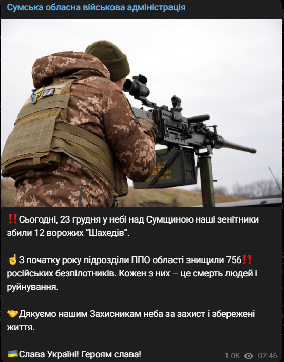 08:05 Сегодня утром в Сумской области силами ПВО были уничтожены 12 "Шахедов", сообщает ОВА.