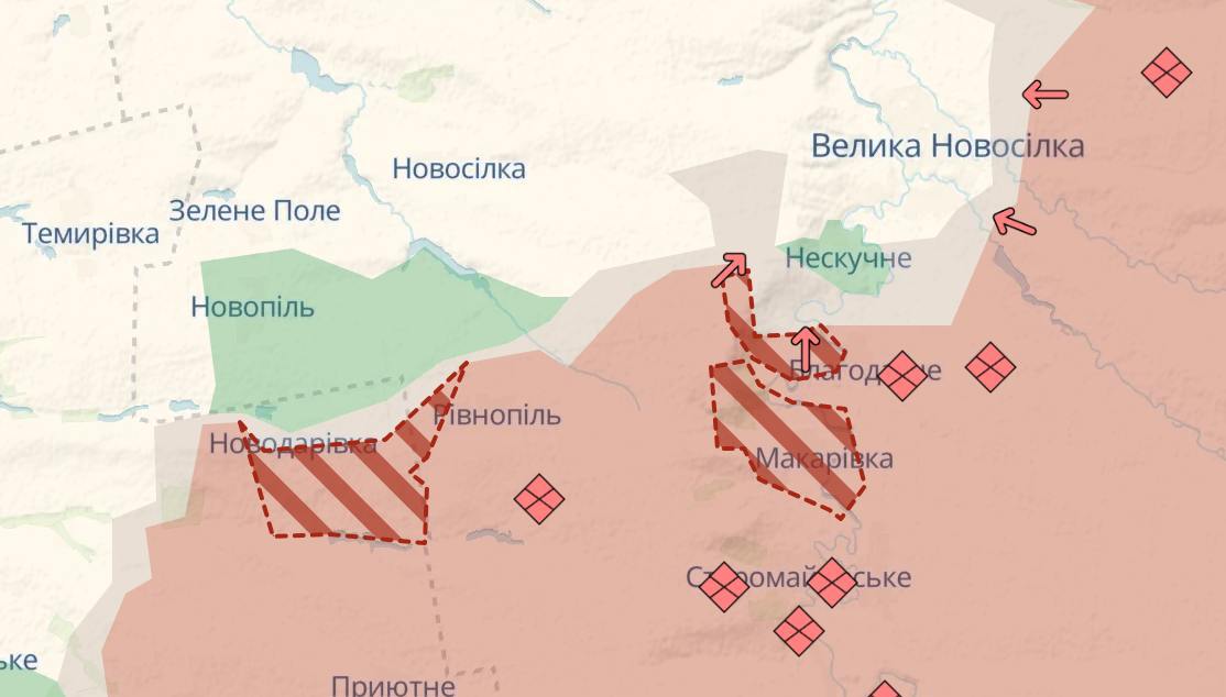 Россияне захватили населенный пункт, соседнее Сторожевое, а также продвинулись западнее в районе Новодаровки.