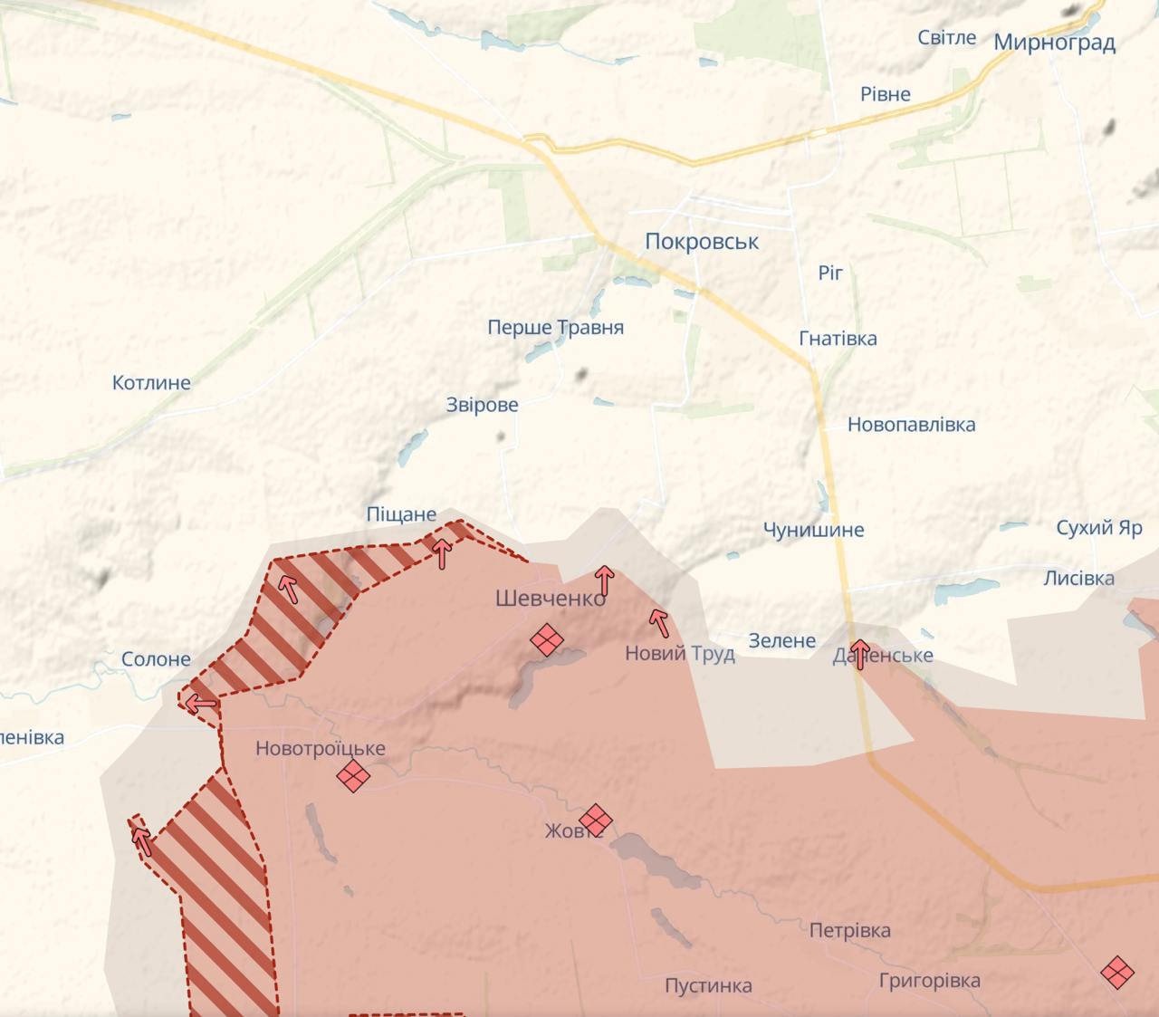 Под Покровском продвижение на окраине Песчаного и по всему фронту южнее вплоть до Курахово.