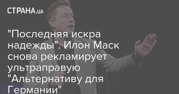 В колонке для газеты Welt am Sonntag Маск заявил, что "Альтернатива для Германии" – "это последняя искра надежды для этой страны".