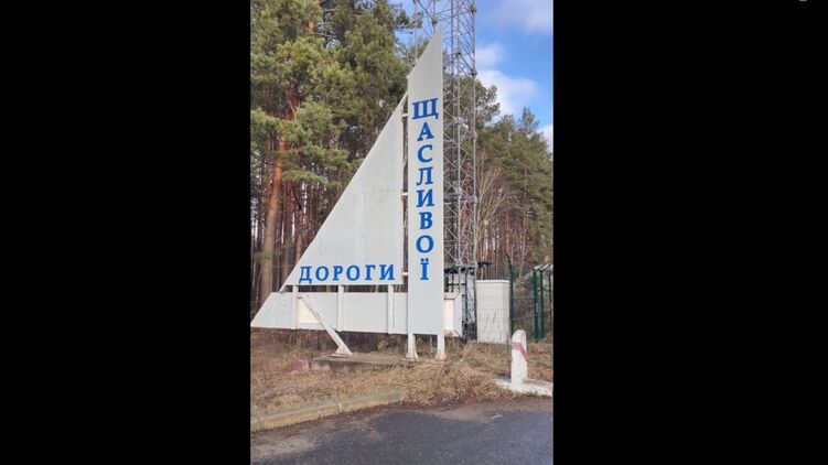 Асфальтовая трасса через границу завалена огромными валунами. Через лес тянется колючая проволока (спирали Бруно - Ред.). Также на проезжей части установлены ежи из железнодорожных рельсов. У обочины дороги, рядом со стеллой "Счастливого пути" расслаблено отдыхает одинокий пёс, которого автор называет единственным охранником кордона, потому что он осматривает и следит за всем.