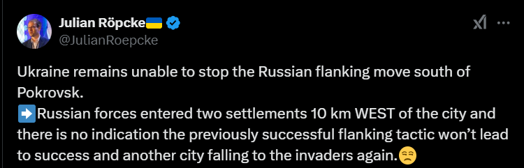 Военный аналитик газеты Bild Юлиан Репке считает, что Украина не в состоянии остановить фланговый удар России под Покровском.