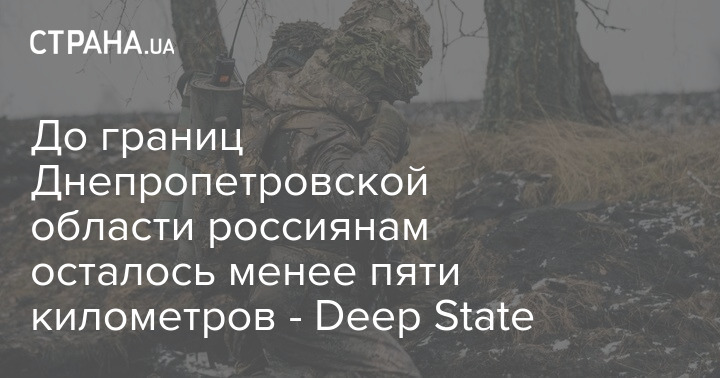 Российским войскам до границ Днепропетровской области осталось менее пяти километров. Об этом свидетельствует онлайн-карта военного паблика Deep State.