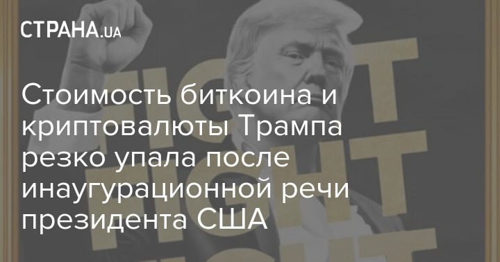 Трампкоин упал на 40%, а биткоин до 100 00 долларов на инаугурационной речи президента США Дональда Трампа, в которой тот ни слова не сказал о криптовалютах.