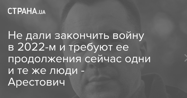 Бывший советник Офиса президента Алексей Арестович заявил, что "те же партнеры, которые не дали нам закончить войну в марте 2022-го, настаивают на ее продолжении в январе 2025-го".