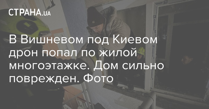В Вишневом под Киевом дрон попал по жилой многоэтажке. Дом сильно поврежден. Фото