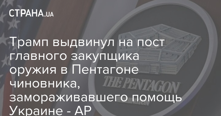 Как пишет агентство, Трамп выдвинул кандидатом на пост главного закупщика оружия в Пентагоне Майкла Даффи – чиновника, который в 2019 году распорядился заморозить военную помощь Украине.