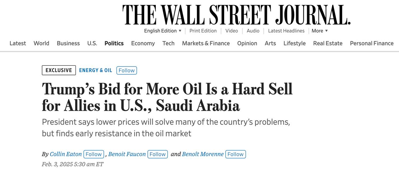 У Трампа хотят снизить цену на нефть до 45 долларов за баррель (сейчас она составляет 73 доллара, а в 2022 году была более 94 долларов). Но такой уровень может оказаться "катастрофическим" для американских сланцевиков и Саудовской Аравии — "двух самых влиятельных друзей Трампа на мировом нефтяном рынке".