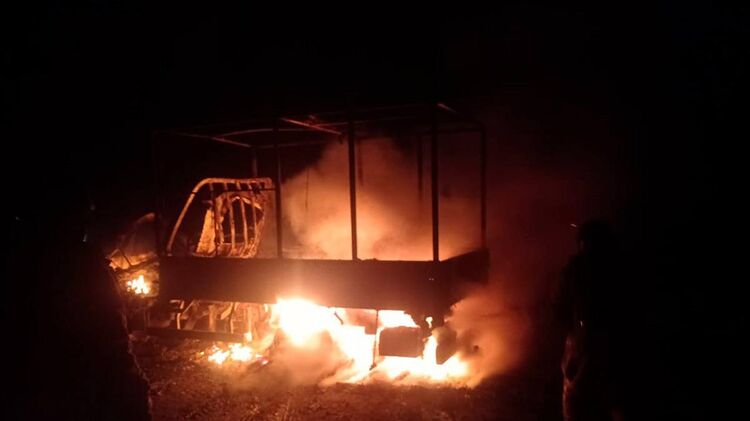 Так, сегодня вечером на дороге вблизи одного из посёлков Синельниковского района области дрон-камикадзе поразил грузовой автомобиль, который полностью сгорел после взрыва беспилотника.