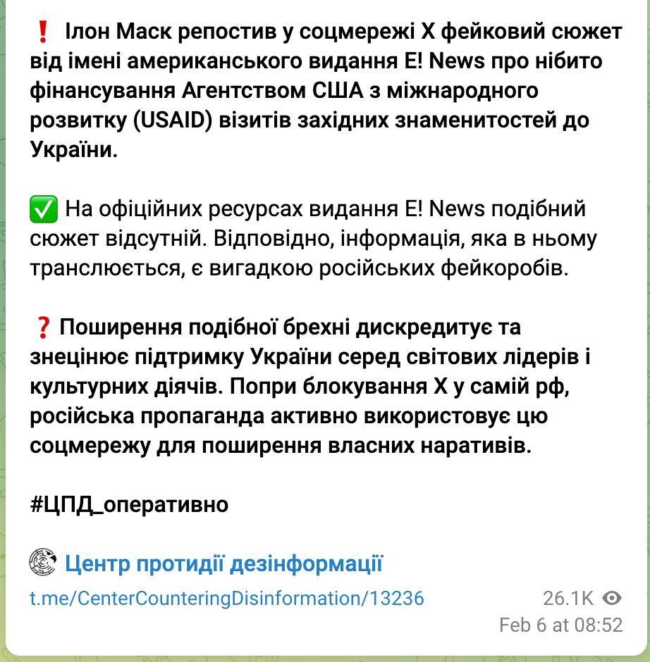 Однако в "Центре по борьбе с дезнформацией" при Совбезе заявляют, что Маск - ныне чиновник в администрации президента США Дональда Трампа - распространил российский фейк.