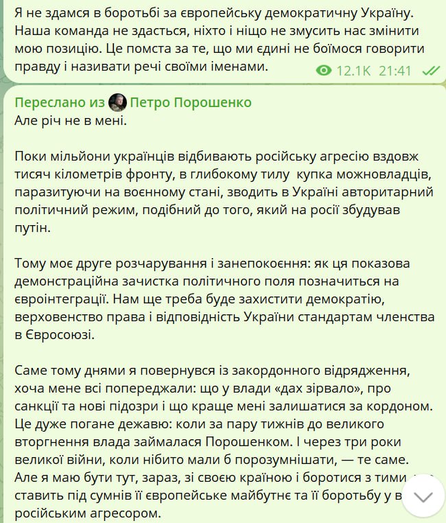 Он заявил, что "в глубоком тылу кучка власть имущих, паразитируя на военном положении, возводит в Украине авторитарный политический режим, подобный путинскому".