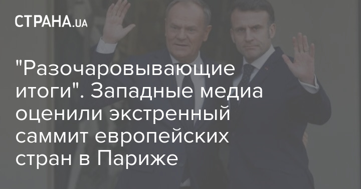 Западные СМИ пишут о "разочаровывающих" итогах экстренного саммита европейских стран, который созвал президент Франции Эмманюэль Макрон в Париже в ответ на требования президента США Дональда Трампа взять на себя вопросы безопасности Украины.