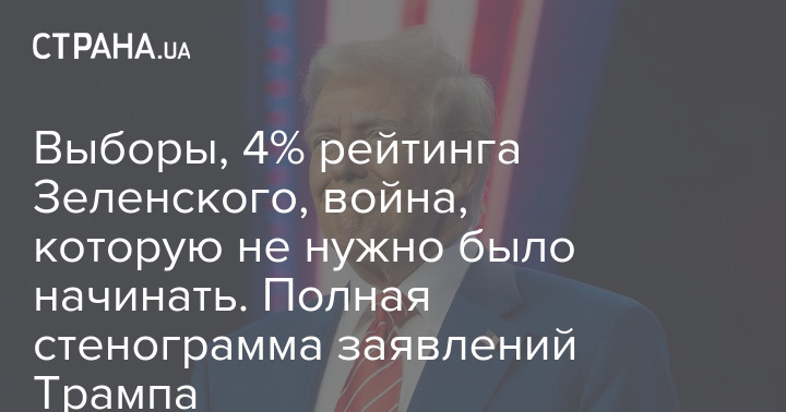 Трамп: У нас есть ситуация, когда в Украине не было выборов и действует военное положение. И украинский лидер – мне неприятно это говорить, но его рейтинг упал до 4%. И когда они хотят место за столом переговоров, разве народ Украины не должен сказать: "Знаете, прошло много времени с тех пор, как у нас были выборы"? Это идет не от России. Это исходит от меня, а также от многих других стран.