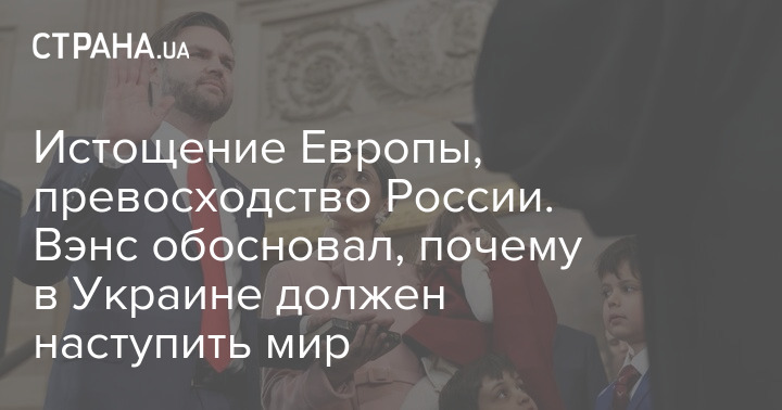 Вице-президент США Джей ди Вэнс считает, что в Украине должен наступить мир, поскольку оружейные склады и военная промышленность Европы истощены, а у России "численное превосходство", из-за чего военные поставки Украине уже не помогут.