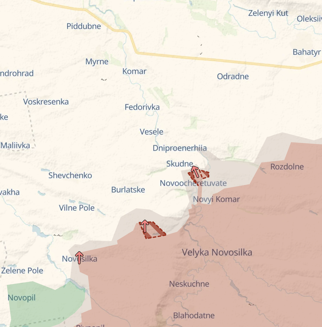 Также РФ продолжила продвижение севернее Великой Новоселки и около Барановки, что рядом с трассой из Покровска в Константиновку. В то же время ВСУ снова атаковали южнее Покровска и продвинулись в Лысовке.