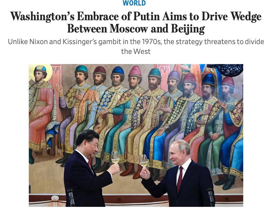 Американский поворот к России направлен на раскол между Москвой и Пекином - но грозит расколом самому Западу, пишет The Wall Street Journal.