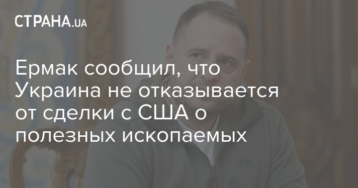 "Никто не отказывался от сделки о полезных ископаемых с США, идёт нормальный рабочий переговорный процесс", – заявил Ермак.