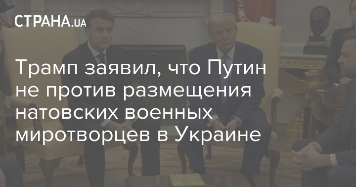 Дональд Трамп заявляет, что Владимир Путин сказал ему, что не видит проблем с размещением европейских войск в Украине в рамках мирного соглашения.