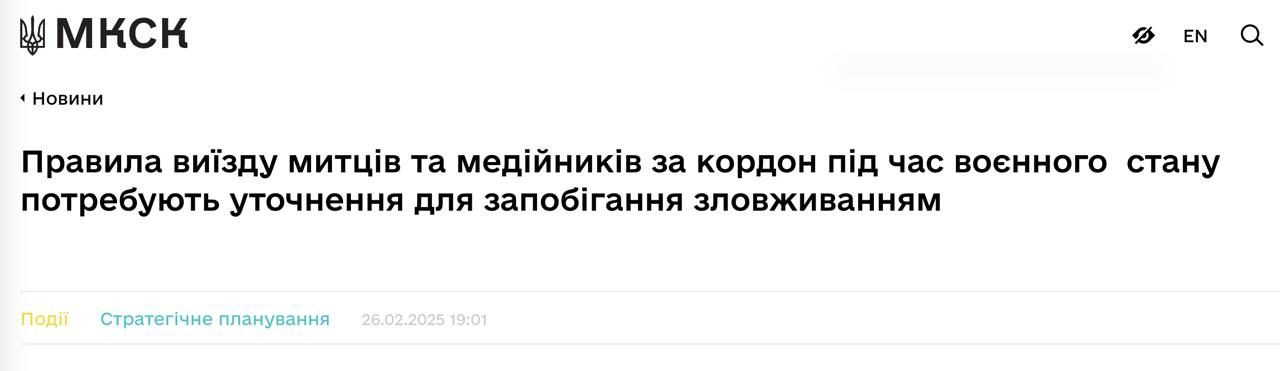 "В связи с этим с 3 марта 2025 года и до нормативно-правового урегулирования этого вопроса министерство приостанавливает выдачу писем содействия в Государственную пограничную службу Украины по выезду указанной категории лиц за пределы государственной границы", - отметили в Минкульте.