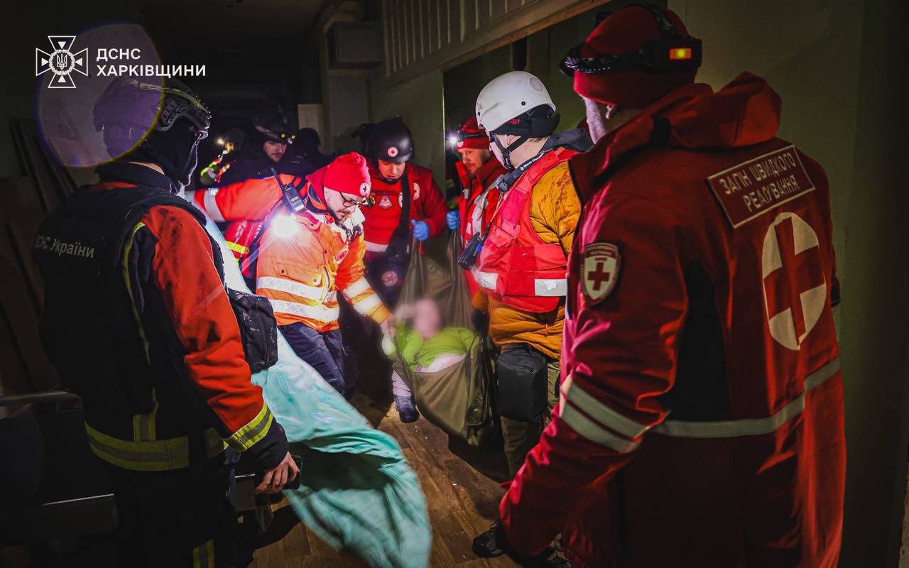Сегодня ночью российские войска нанесли массированные удары по Киевскому, Шевченковскому и Новобаварскому районам Харькова, а также по Харьковскому району области. Пострадали 12 человек, среди которых 2 детей.