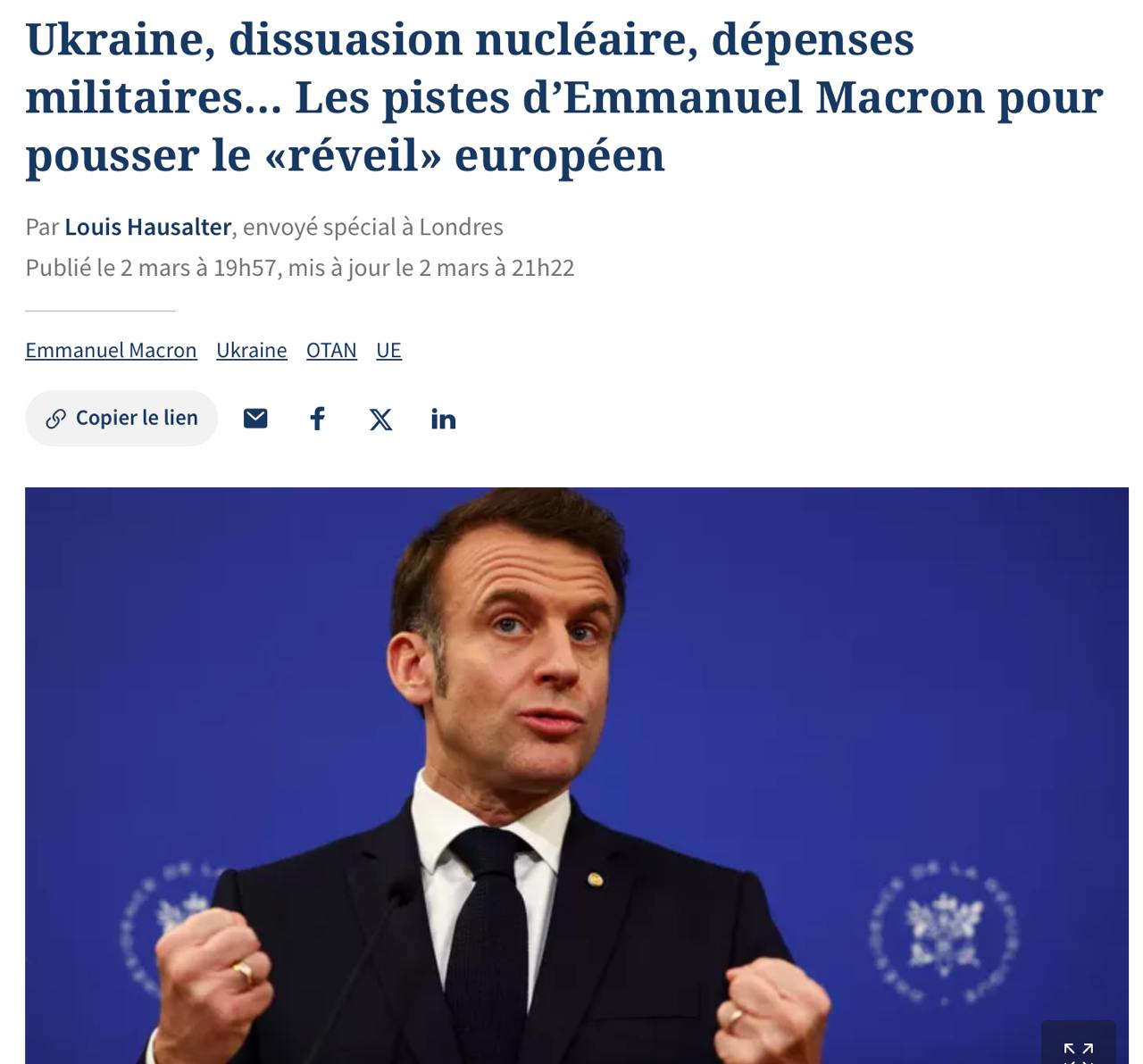 Также Макрон выражает уверенность в возможности «деэскалации» между Трампом и Зеленским. Он уже говорил с американским президентом в пятницу и субботу: «В ближайшие дни нам должно удасться вновь наладить диалог».
