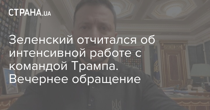 Зеленский отчитался об интенсивной работе с командой Трампа. Вечернее обращение