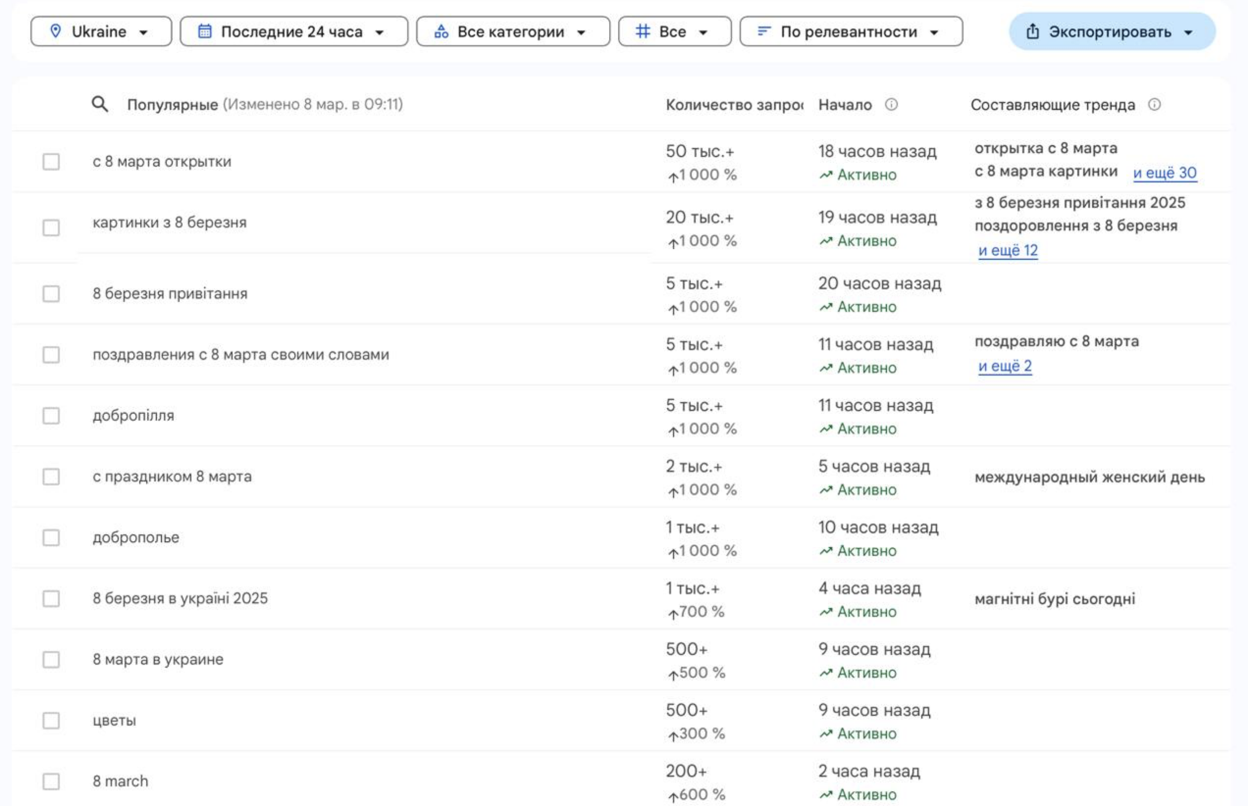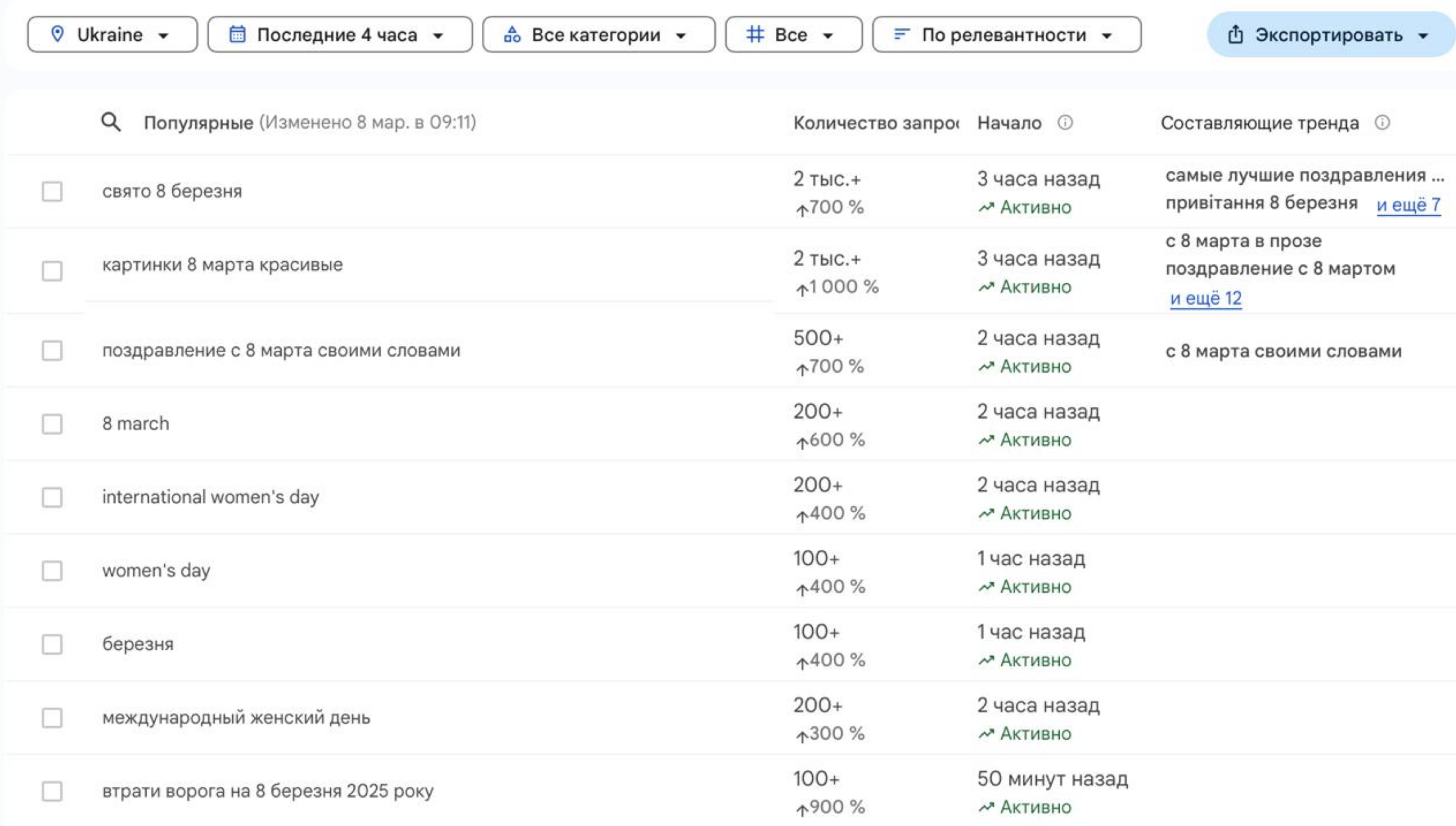 Украинцы сегодня массово ищут в Google поздравления с 8 марта.