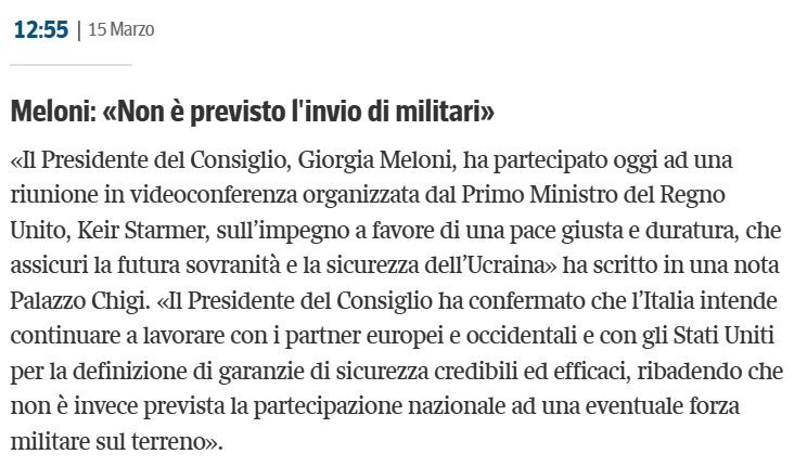 Ранее Мелони уже заявляла, что не будет отправлять итальянских солдат в Украину