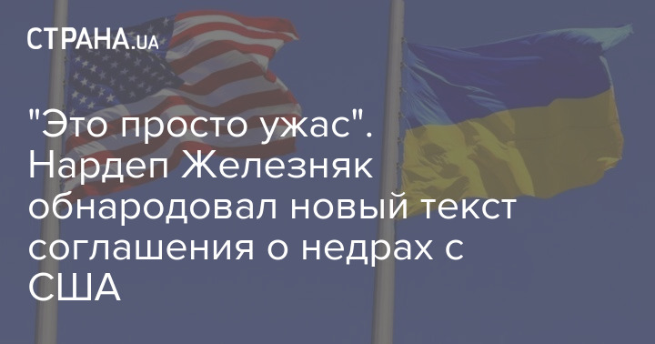 "Это просто ужас". Нардеп Железняк обнародовал новый текст соглашения о недрах с США