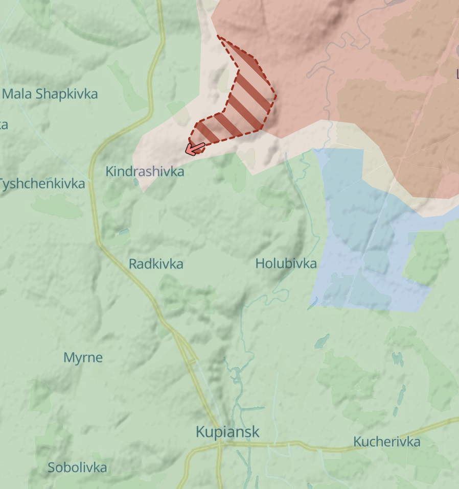 Также за минувшие сутки россияне значительно продвинулись к северу от Купянска в районе села Кондрашовка. С явной попыткой пробиться к трассе Купянск - Великий Бурлук.