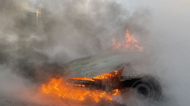 На видео с места происшествия видны горящие автомобиль и гаражи.