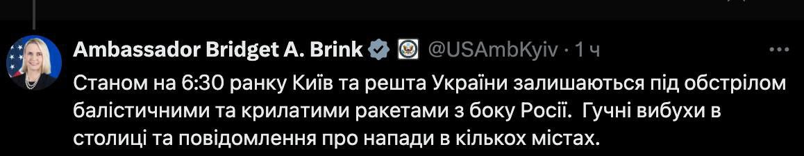 Отметим, что уже сегодня, комментируя удар баллистикой по Киеву, Бринк отметила, что его нанесла РФ, но не призывая при этом Россию к ответу и не называя удар "бессовестным". В Центре противодействия дезинформации при СНБО, впрочем, назвали это "прогрессом".