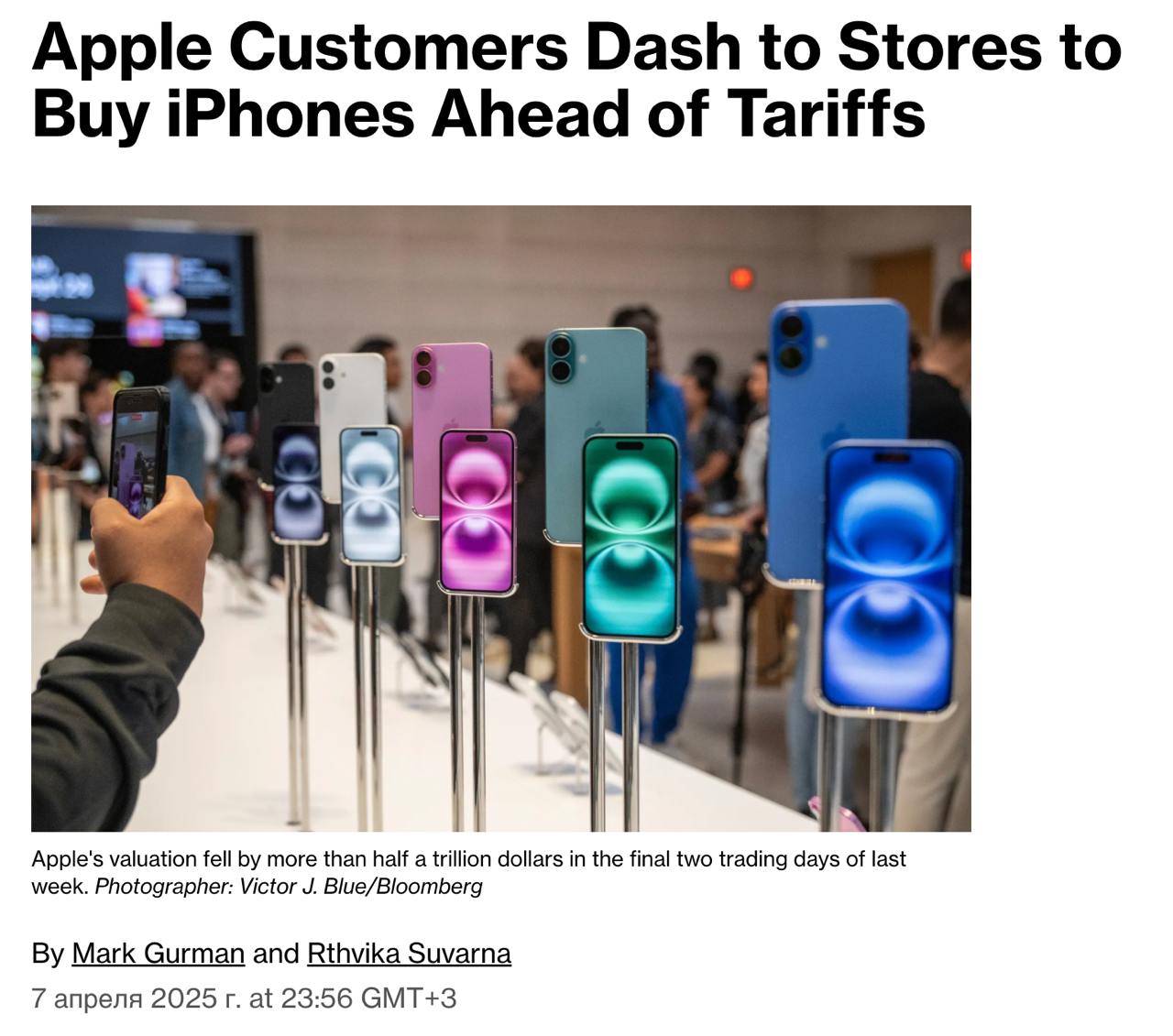 Американцы массово скупают iPhone, опасаясь повышения их стоимости из-за пошлин Трампа - Bloomberg
