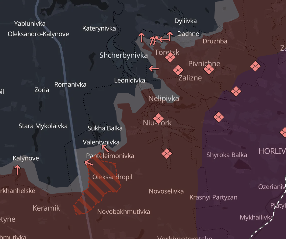 По словам украинских военных, россияне на этом участке снова активизировались, но при этом они могут пойти не на сам Покровск, поскольку он надежно защищен, а на запад - в сторону Днепропетровской области, до которой осталось 6 км.